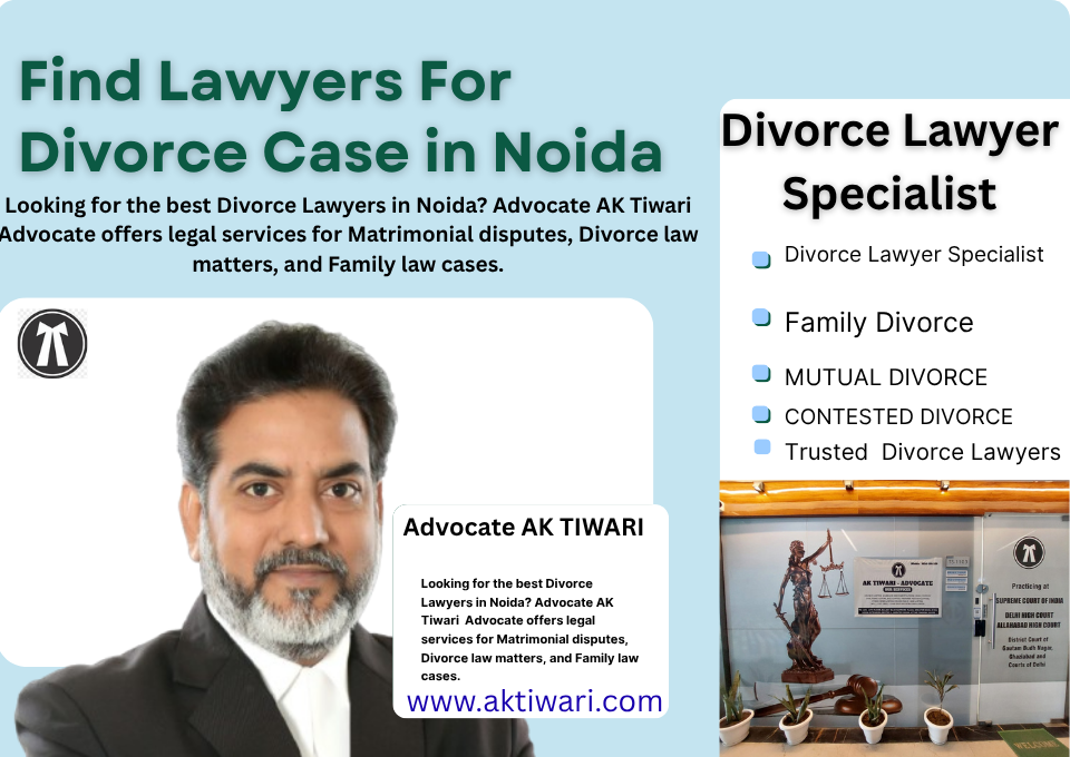 November 24, 2025Divorce Lawyer Specialist In Noida is one of the most emotionally challenging and legally complex phases in a person’s life. When a marriage breaks down and reconciliation seems impossible, the next crucial step is to seek guidance from a knowledgeable and experienced divorce lawyer. Advocate AK Tiwari is a well-known name in the field of family and matrimonial law, offering comprehensive legal support for clients seeking separation, divorce, child custody, maintenance, alimony, and related matters. His expertise, dedication, and practical approach have made him a trusted divorce lawyer for individuals and families in Noida, Delhi-NCR, and surrounding regions.